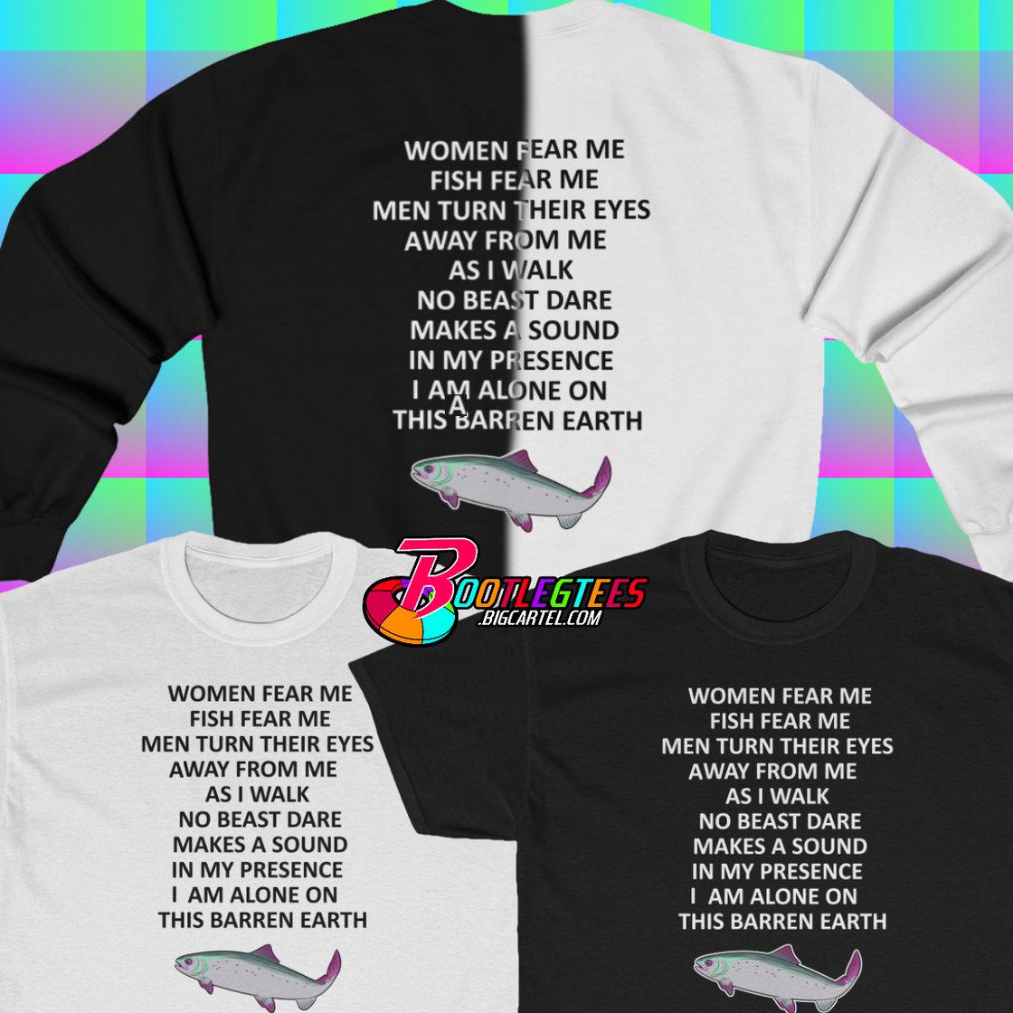 WOMEN FEAR ME FISH FEAR ME MEN TURN THEIR EYES AWAY FROM ME AS I WALK NO BEAST DARE MAKES A SOUND